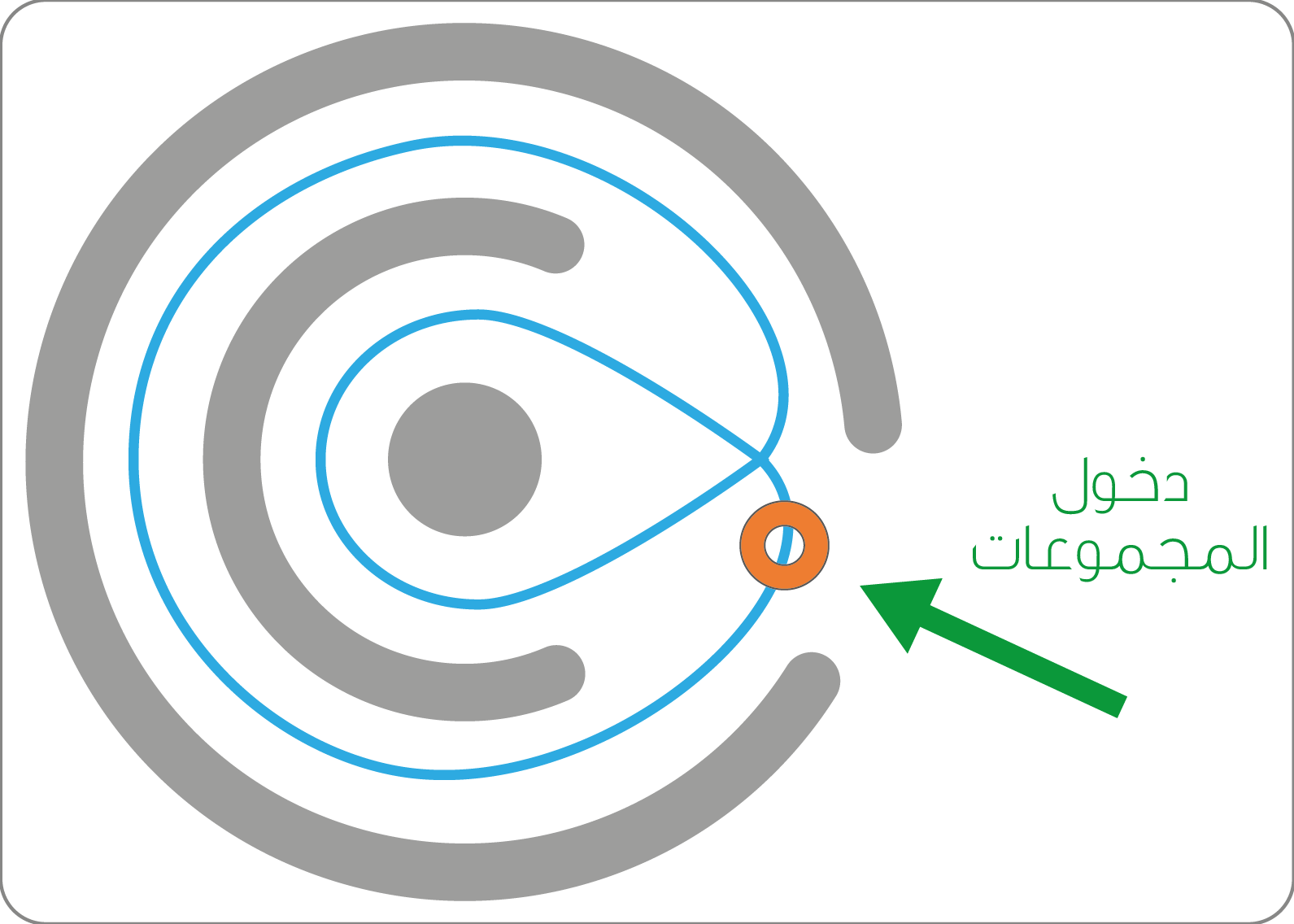 سيناريو الحركة الأساسية، وفيه يتم تدفق المشاة داخل التقاطع من ثلاثة طرق ليصبوا في الطريق الرابع وينتظروا هناك برهة ثم يخرجوا عائدين من نفس الطريق إلى أماكن انطلاقهم، وتمثل هذه الحركة قدومهم من مخيماتهم في عرفات للوقوف على جبل الرحمة ثم العودة إلى مخيماتهم، فيطلب من المشاركين الوقوف لفترة تتراوح بين نصف الدقيقة والدقيقتين كل حسب رغبته ثم العودة، فيكون تدفق الحركة على الشكل